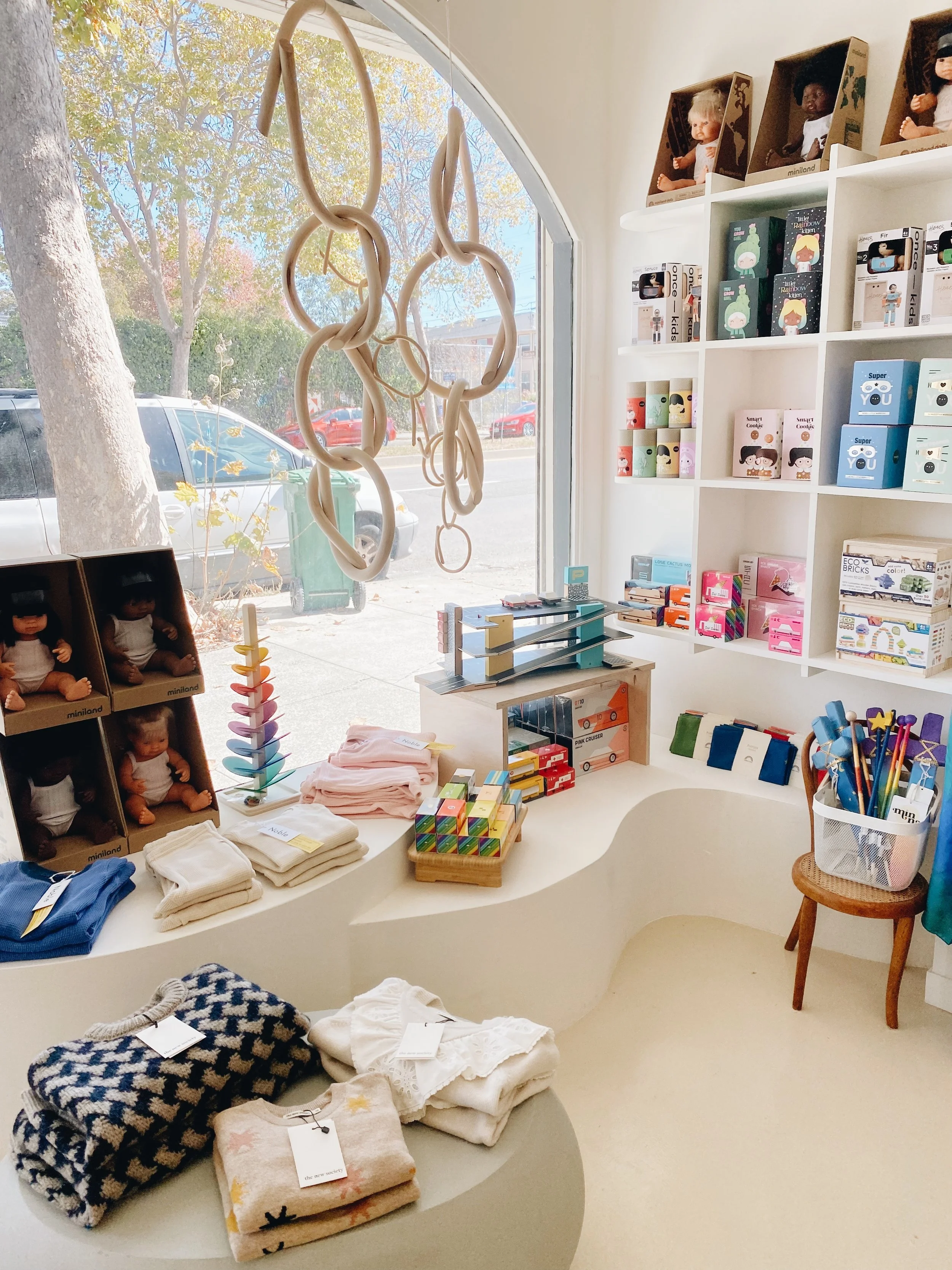 On the left side of the shop you will find thoughtfully curated clothing, toys and books for children ages 5-12. There is a little nook where the little ones can play while the grown ups shop.